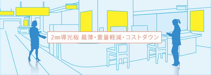 2㎜の導光パネルを開発いたしました。最薄で重量軽減・コストダウンにも最適です。